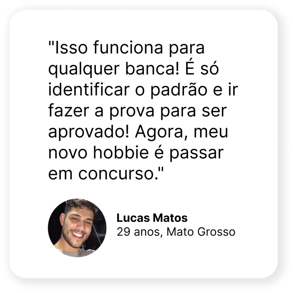 "É muito simples! Cada banca tem um padrão de resposta para evitar recursos e anulações. Por isso, quando você utiliza a IA para identificar esse padrão, é quase impossível errar qualquer questão da prova", diz Evandro Guedes